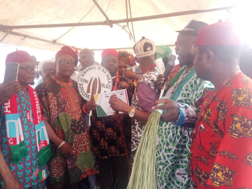 Hon Azeez Ogidan, the APC Chairmanship candidate for Coker-Aguda LCDA, in the July 12, 2025, Lagos Local Government election, has been conferred with a Chieftaincy title of Nwanne di na Mba 1 of Ndi Igbo in Lagos, courtesy of the Ozioma Palace.