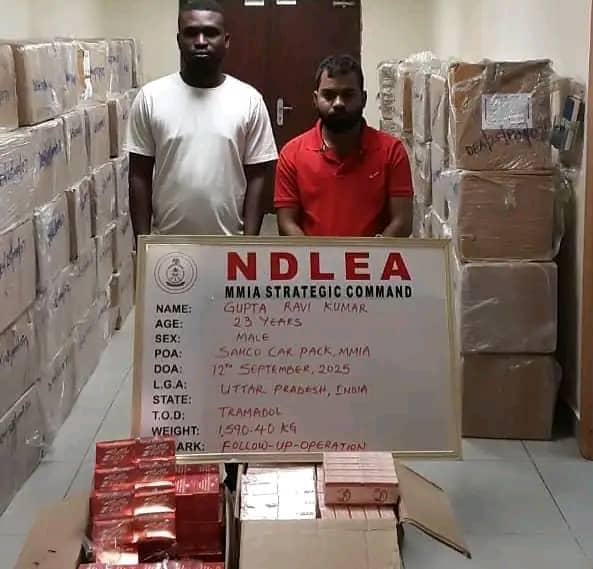 The tramadol shipment worth Three Billion Nine Hundred and Ninety Million Naira (N3,990,000,000) in street value was imported from Delhi, India, disguised as multi-vitamins in 114 cartons and arrived the import shed of the Lagos airport on an on Ethiopian Airline flight on Monday 8th September 2025.