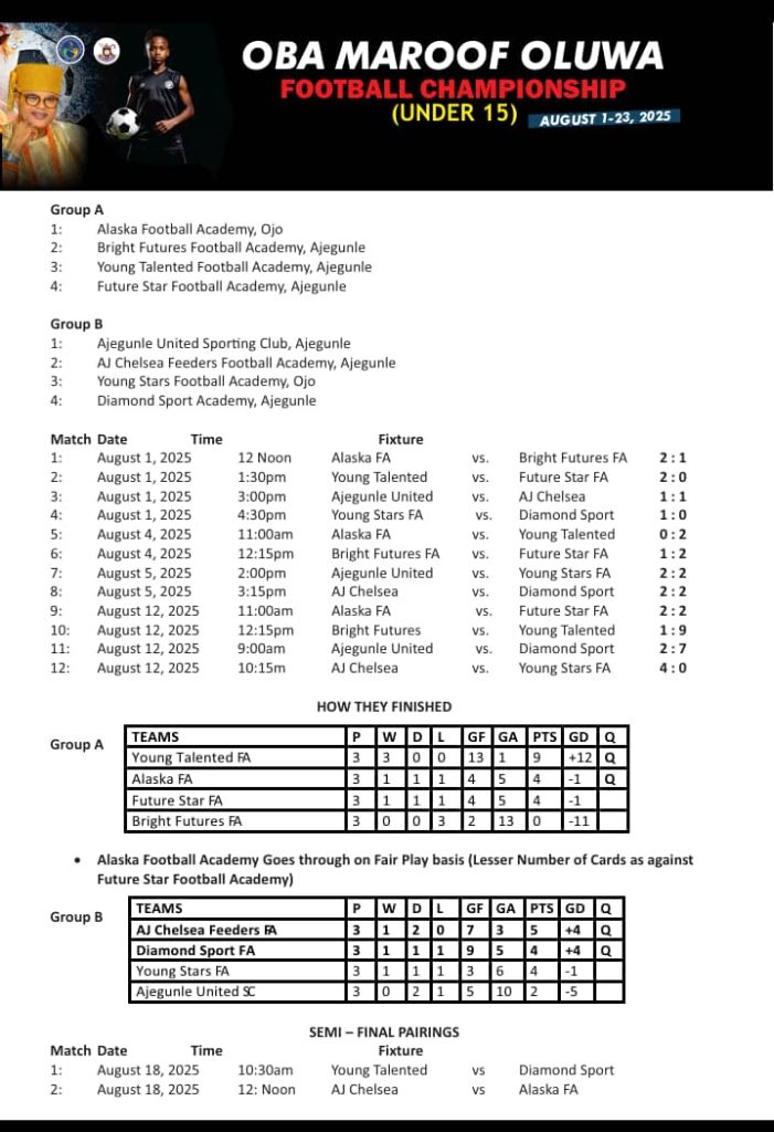 At the kick-off, the Kabiyesi who was a retired accredited referee admonished the young players to be good in their studies.